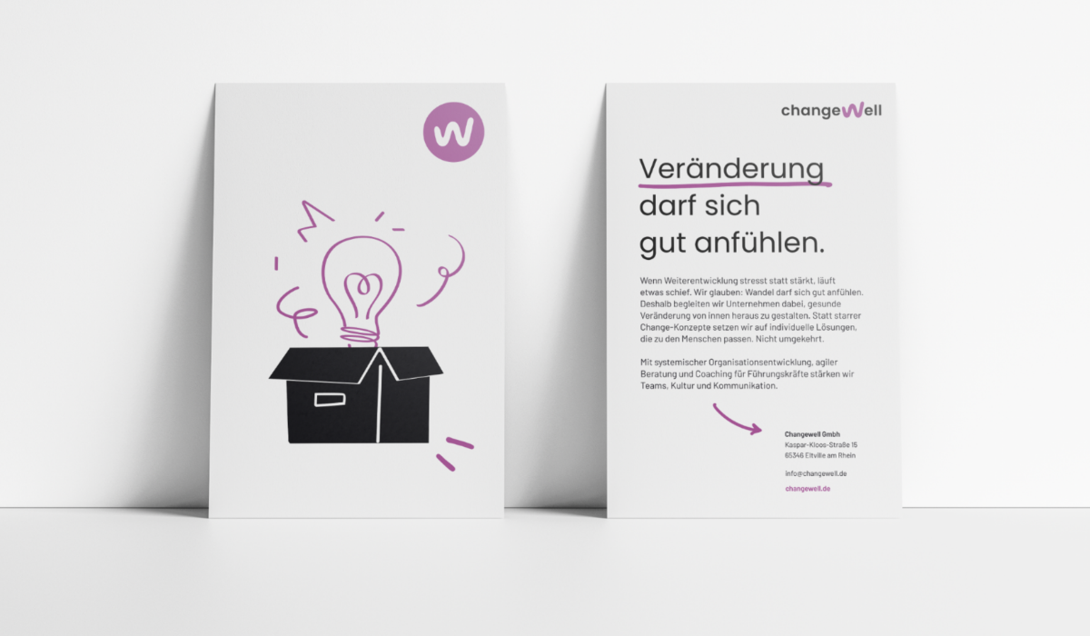 Changewell ist eine Beratung für Organisation, Führung und Kultur. Im Fokus stehen systemische Organisationsentwicklung, agile Beratung und Coaching für Führungskräfte mit dem Ziel, Veränderung gesund zu gestalten. Unsere Aufgabe: Markenentwicklung von Grund auf plus Brandguide.